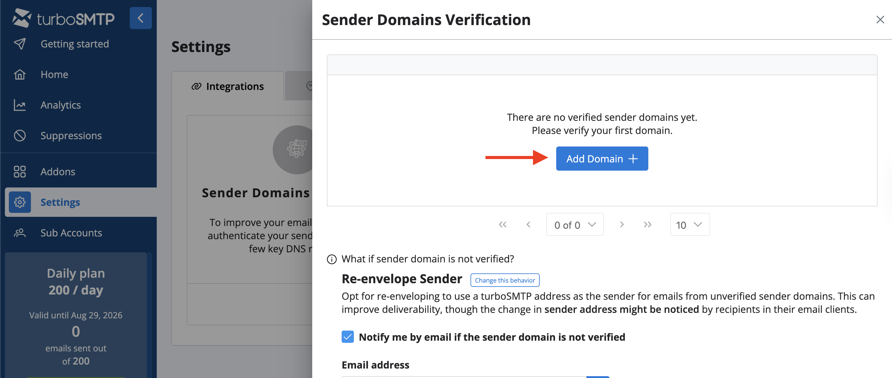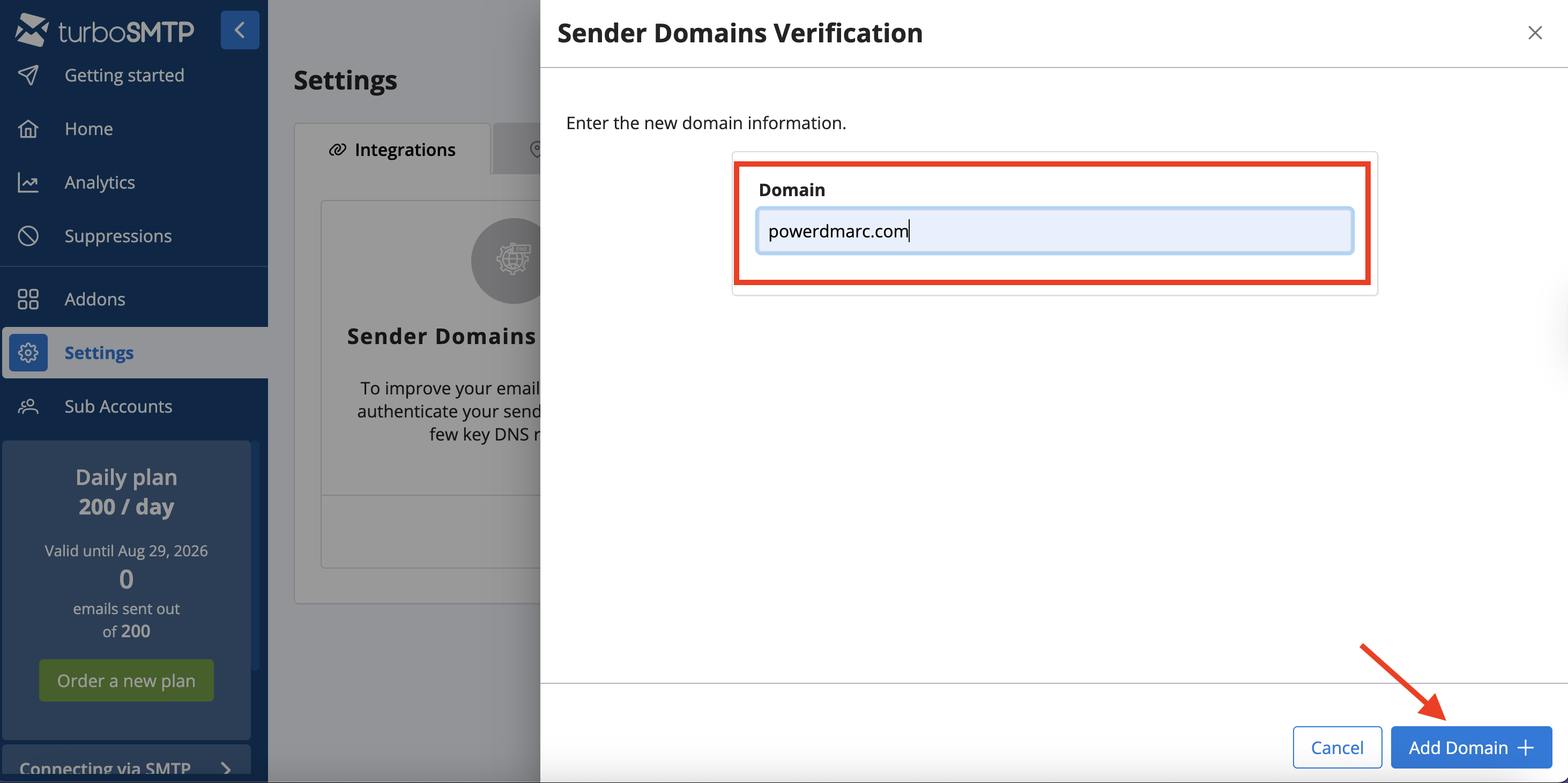 If the records are correct, TurboSMTP will confirm the domain as authenticated.