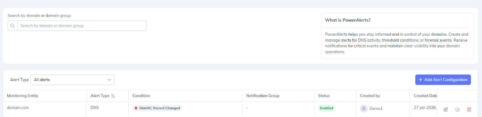 This article provides a step-by-step guide to configuring DNS Alerts and explains each configuration option to help you set up effective, actionable monitoring for your domains.