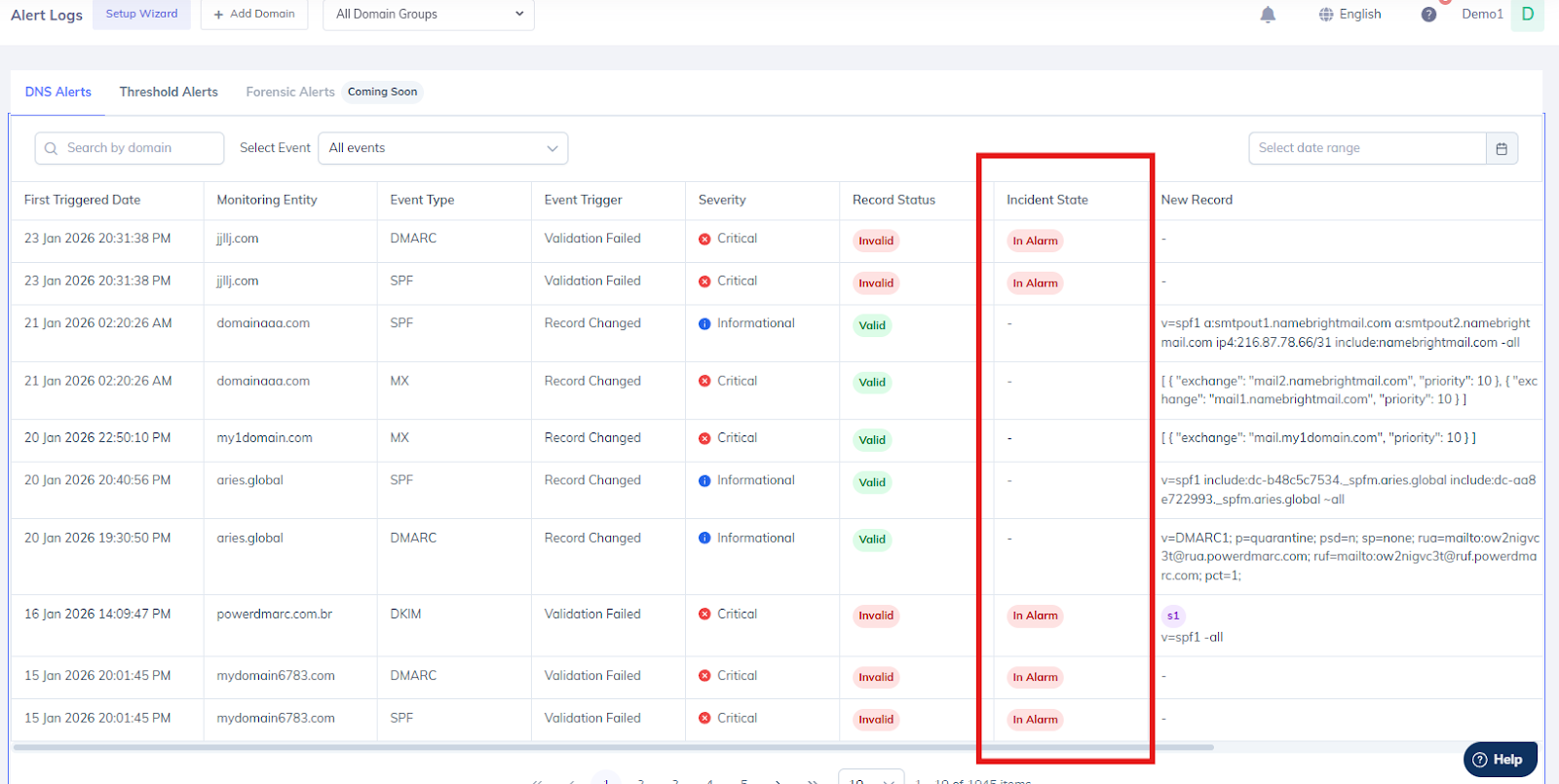 The enhanced alerting system improves visibility into both active incidents and resolved events, making it easier to track the full lifecycle of DNS-related issues.