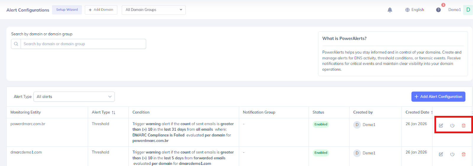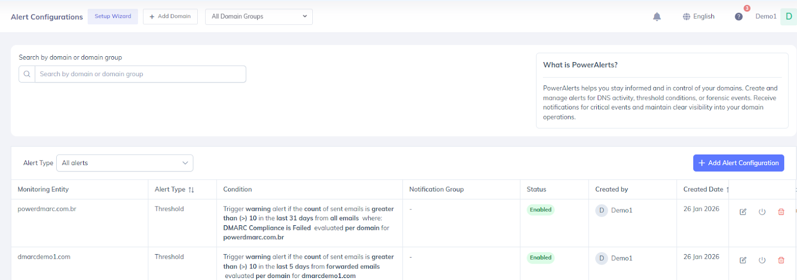 Navigate to PowerAlerts in your PowerDMARC dashboard.